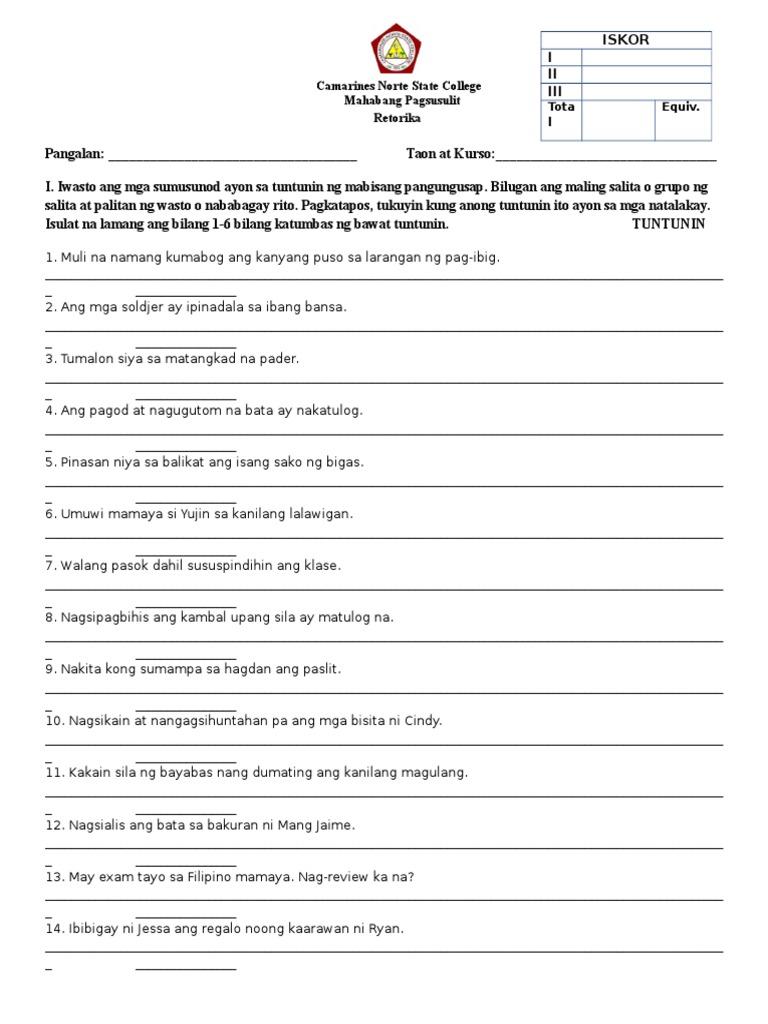 Ang tuldok ay ginagamit sa katapusan ng pangungusap. Live worksheets Tagalog. Pangungusap Worksheets Part 5 The five pdf worksheets below are about the five types of Filipino sentences.